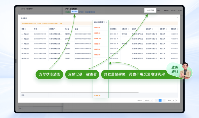 • 使用斗栱云,业务人员可实时了解支付情况,提高协同效率。
