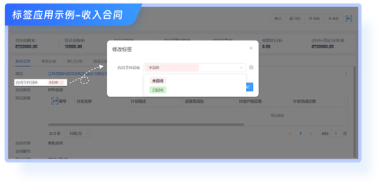 您也可以允许多个部门都能查看或编辑同一个【标签】,实现围绕某个单据的后续事项的信息共享,例如: