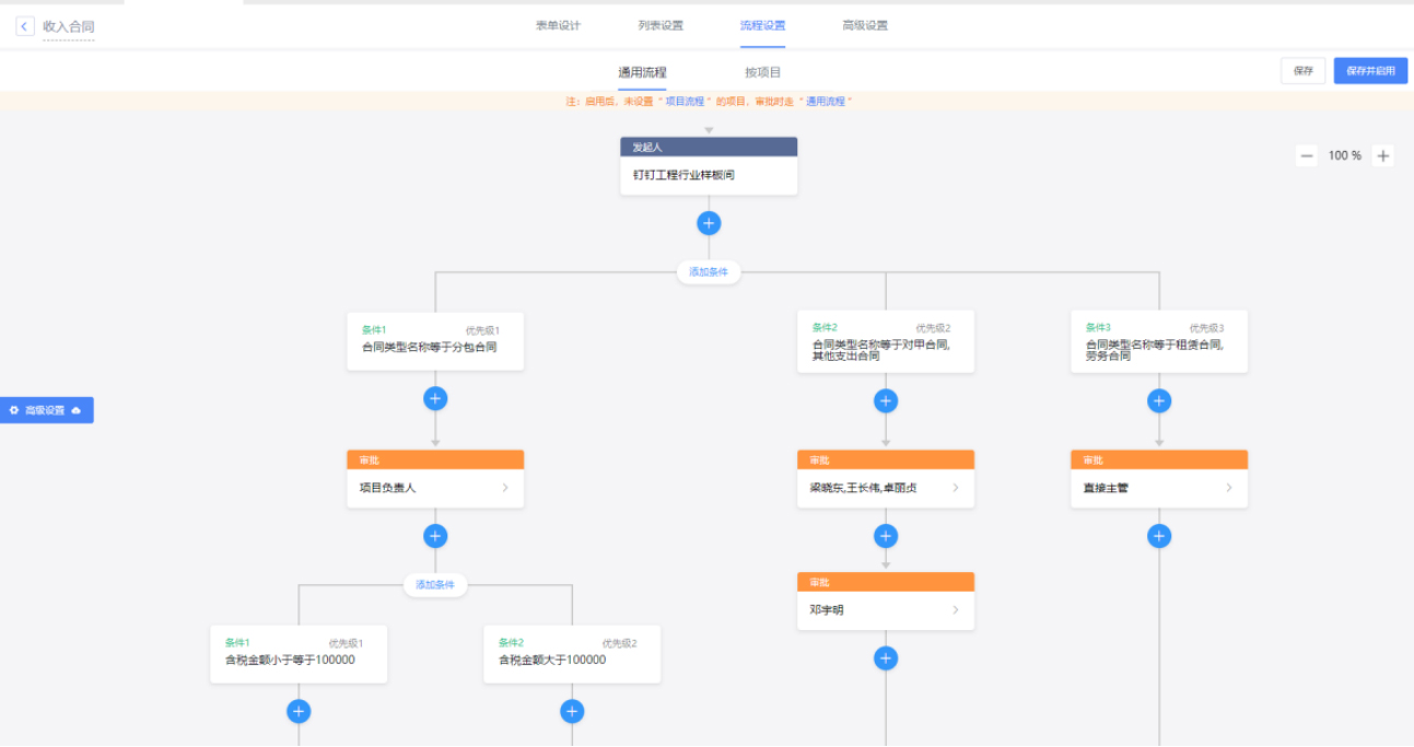 工程收入合同评审过程会涉及公司的很多部门,流程通常比较长,同时不同类型、不同专业、不同金额的合同还会有各种不同的流转要求。由人工传递流转不但速度慢效率低,执行过程中也容易出现该审的人没审的情况,轻则来回传递拖长审批时间,重则为后续经营埋下隐患。