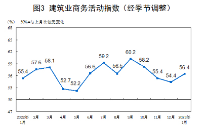 建筑业商务活动指数为56.4%,较上月上升2.0 %;