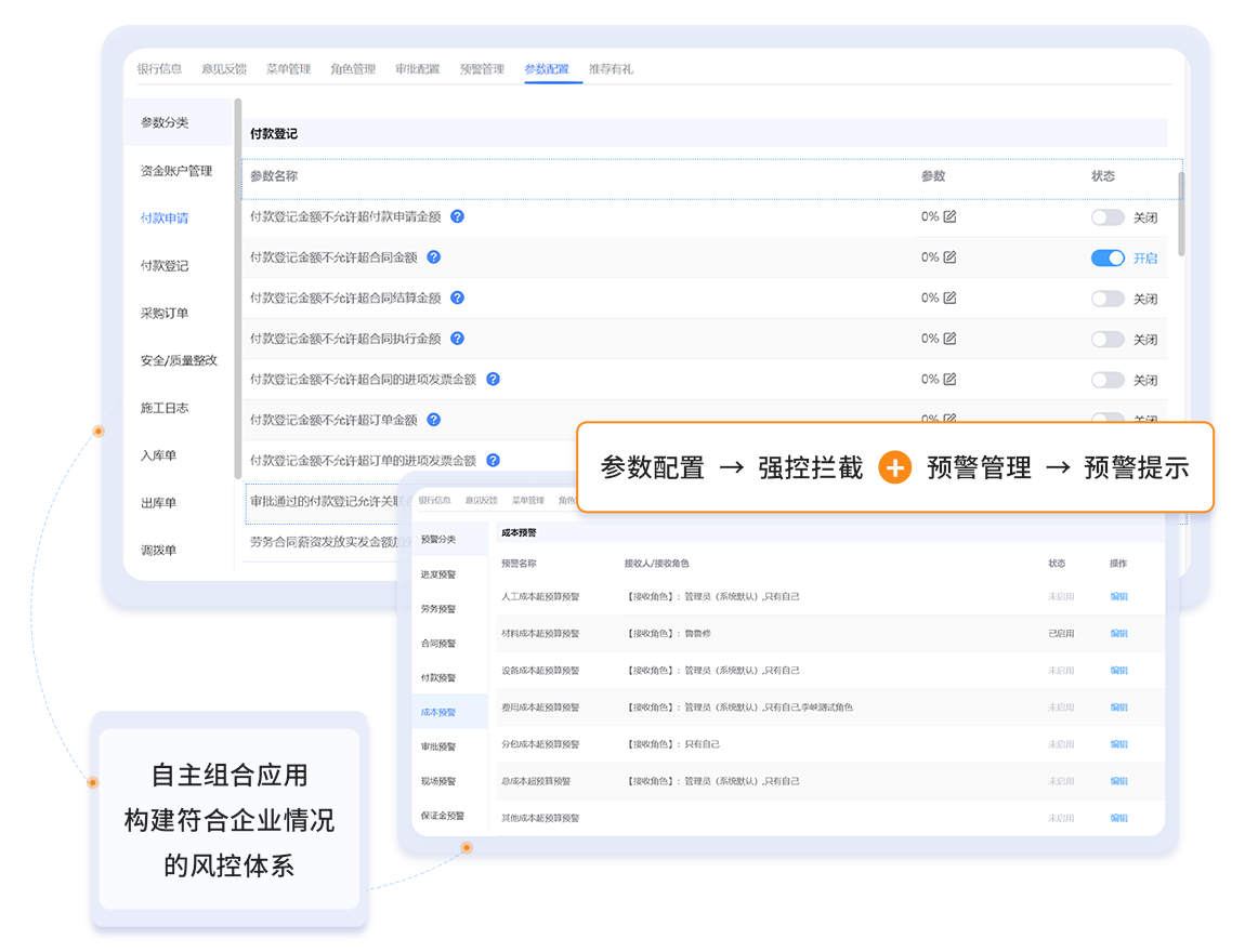 企业可通过自主参数设置,实现业务过程中对风险业务在提交环节进行拦截,实现风险强控
