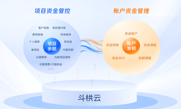 斗栱云系统在原“项目资金管控”能力的基础上,通过资金账户管理功能,扩展“账户资金管理”能力,同时秉承斗栱云一直以来的“开箱即用”设计思路,让企业仅用7天时间即实现资金管理的“业财融合”。