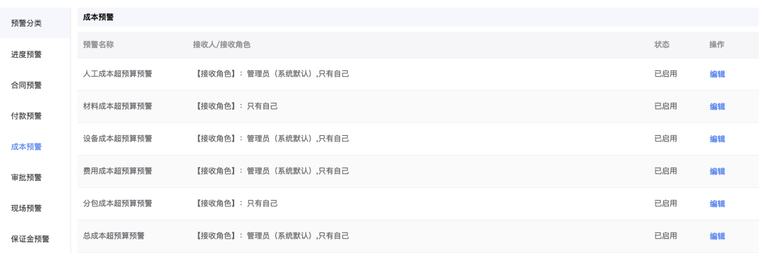 通过系统实现可配置的预算超支自动预警,对于成本占比较大的重点材料实现过程超量控制,帮助及时发现和管控成本超支。