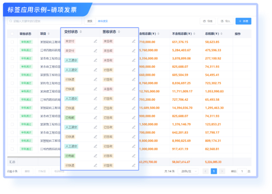 1. “经办人”可标记开具的销项发票,是否已经递交给客户,为“财务部”后续跟踪核对提供信息。