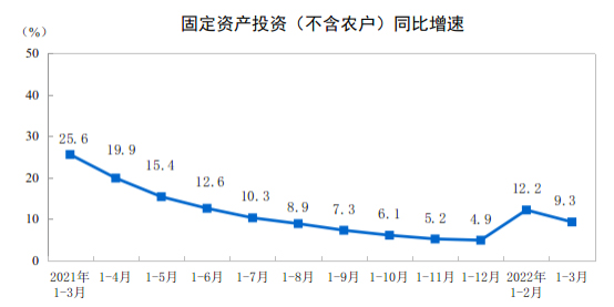 1—3月份,全国固定资产投资(不含农户)104872亿元,同比增长9.3%。其中,民间固定资产投资59622亿元,同比增长8.4%。从环比看,3月份固定资产投资(不含农户)增长0.61%。