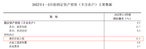 由上图所示,1-3月,建筑安装工程投资同比增长11.3%