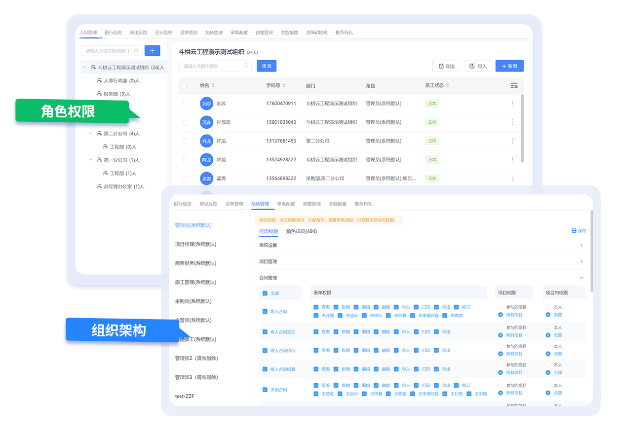 不仅功能授权,还支持项目、单据、字段多维度数据权限体系, 灵活适配企业管理需求
