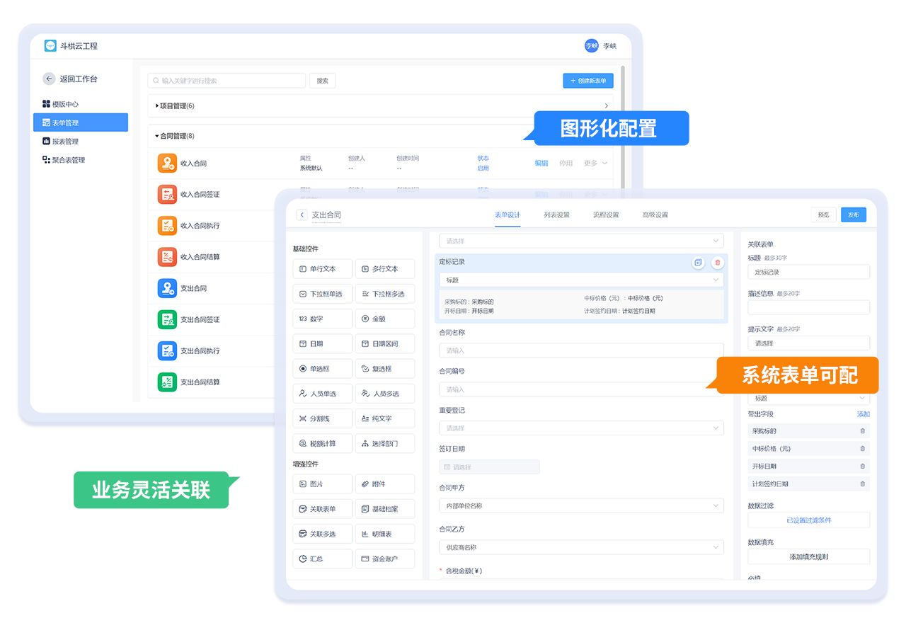 无论自定义表单还是系统标准表单,均可灵活构建关联,满足更广泛的业务管理场景需求