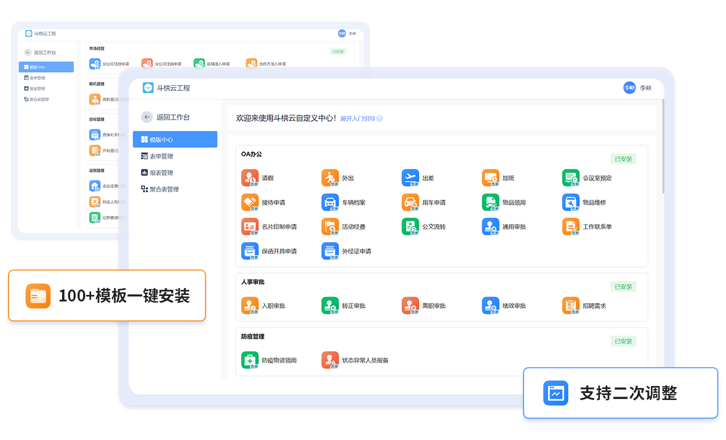预制上百个工程行业管理表单和自定义报表模板,一键安装即可使用