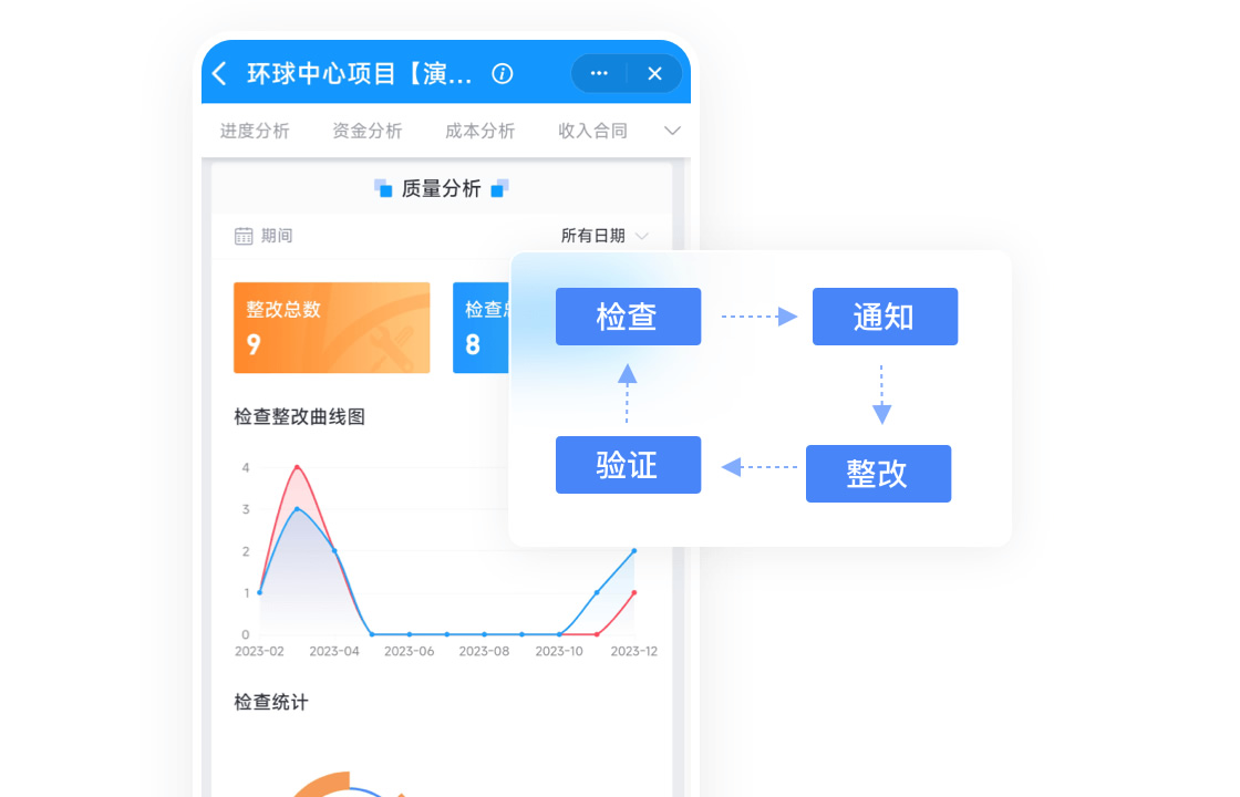 移动端快速汇报现场质安情况,项目贯标情况随时掌握,过程资料及时在线留档