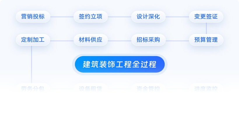 为了提升竞争力、成功获取项目,建筑装饰企业经常是“设计施工一体化”的业务模式,以设计为源头,驱动采购和施工的开展,这中间就涉及到预算、采购、进度、变更等多方面的协同要求。