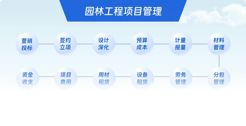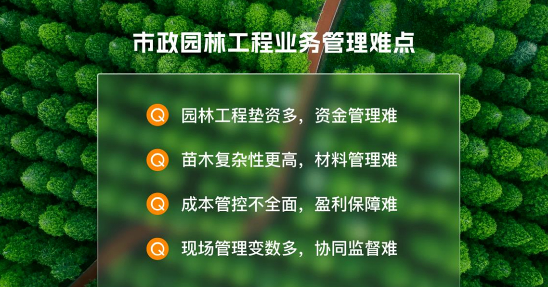 园林项目工程内容多样,涉及计划、采购、放线、施工、种植、养护等环节众多。同时现场施工受 天气变化、管网位置差异、树种更换等等各种因素影响,园林工程通常变更也较多。使得公司和项目现 场经常会出现各种信息差异,公司不能及时掌握项目最新情况和风险,对项目需求的协同配合也容易出 现偏差,导致如进度延期、质量问题、返工成本甚至安全事故等。